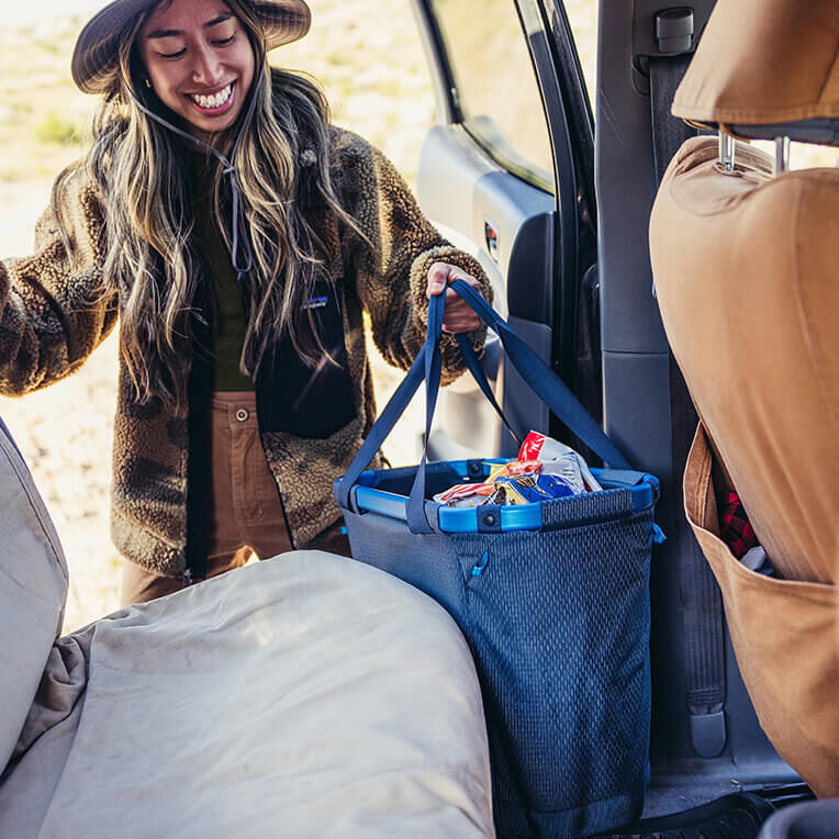 Чанта Alpaca Gear Tote 30L – чанта за екипировка, проектирана за бърз и лесен достъп, изработена от сгъваема алуминиева рамка, свързана с гъвкава основа за издръжливост и защита. Проектирана да се поставя зад предната седалка на автомобила, за да се използва пространството в зоната за краката, тази чанта бързо се сгъва, за да пести място, когато не се използва, и се предлага с чувал за съхранение. Gear Tote идва с дръжки за хващане и е изработена от смесени рециклирани материали, за да се сведе до минимум въглеродният й отпечатък.