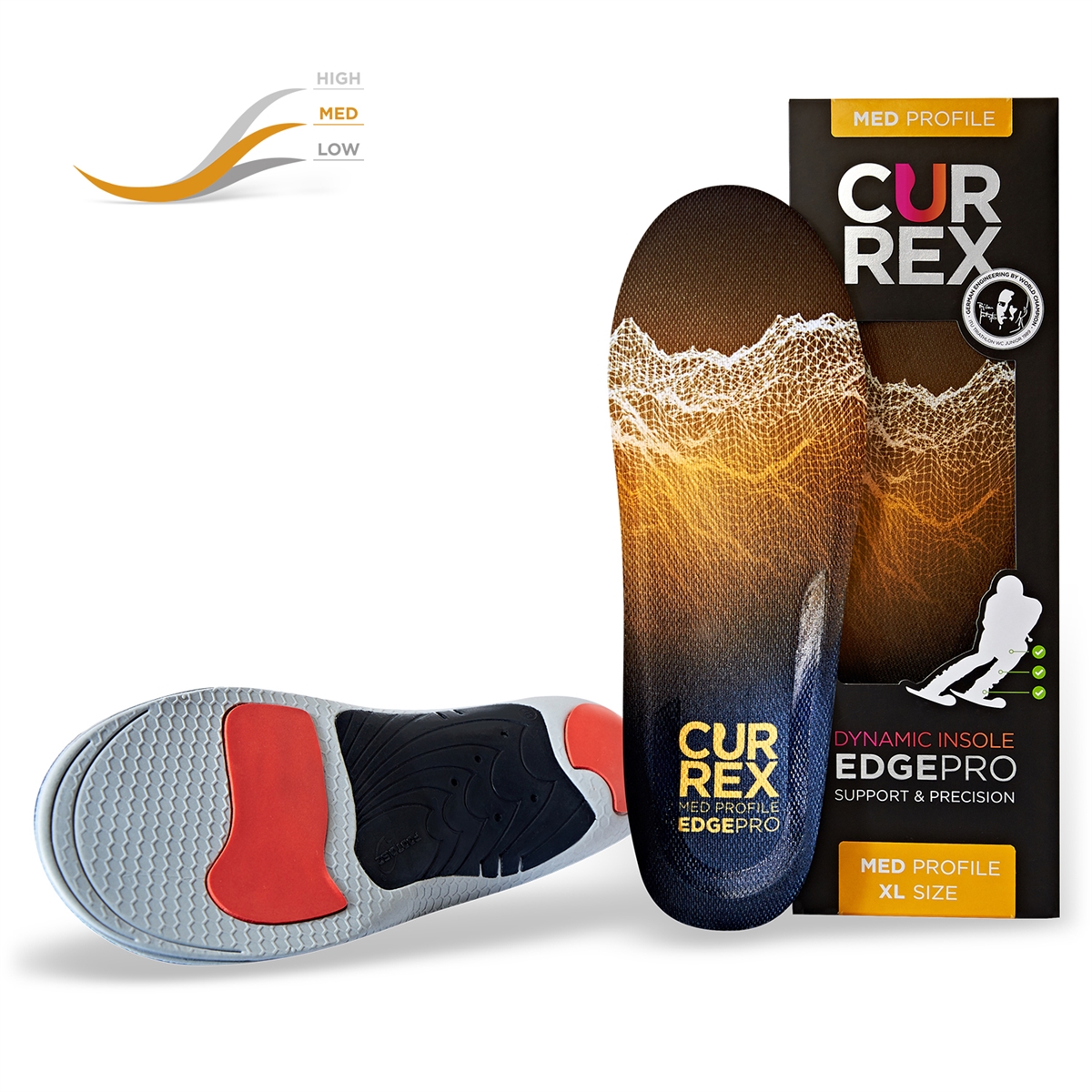 Стелките EDGEPRO са предназначени за ски и зимни спортове и решават всички проблеми с прилягането на ски оувките като направляват позицията на стъпалото и разпределят усилията равномерно. Това има позитивен ефект върху кинетичната верига и води до редуциране на напрежението в глезените, коленете, бедрата и ниската част на гърба по време на ски. EDGEPRO подобряват баланса и трансфера на импулса от крака и подобряват цялостния контрол над ските, независимо дали сте начинаещ или експерт. EDGEPRO са налични в три различни варианта според височината на свода. EDGEPRO Medium са предназначени за нормален свод на ходилото.