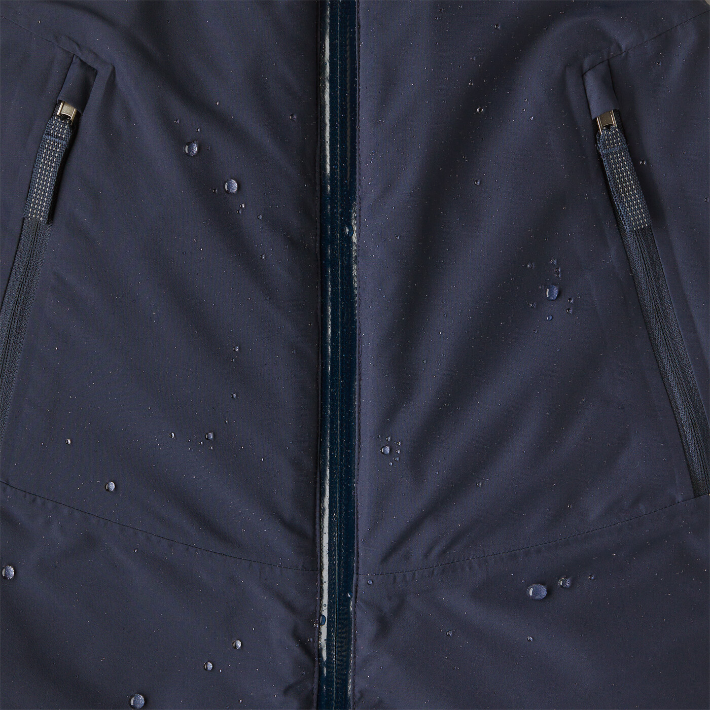 Вътрешният капак против буря на централния преден цип има затваряне с щракване в горната част, за да осигури възможност за въздушен поток, ако е разкопчан