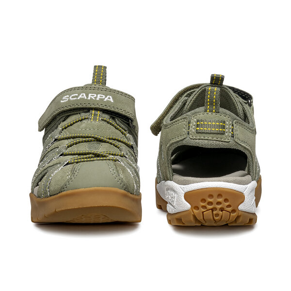 MOJITO SANDAL KID са лятната версия на най-популярния модел на Scarpa - Mojito, с горна част изработена от велур и текстил. Затворени пръсти за повишена защита и анатомичен калъп.
