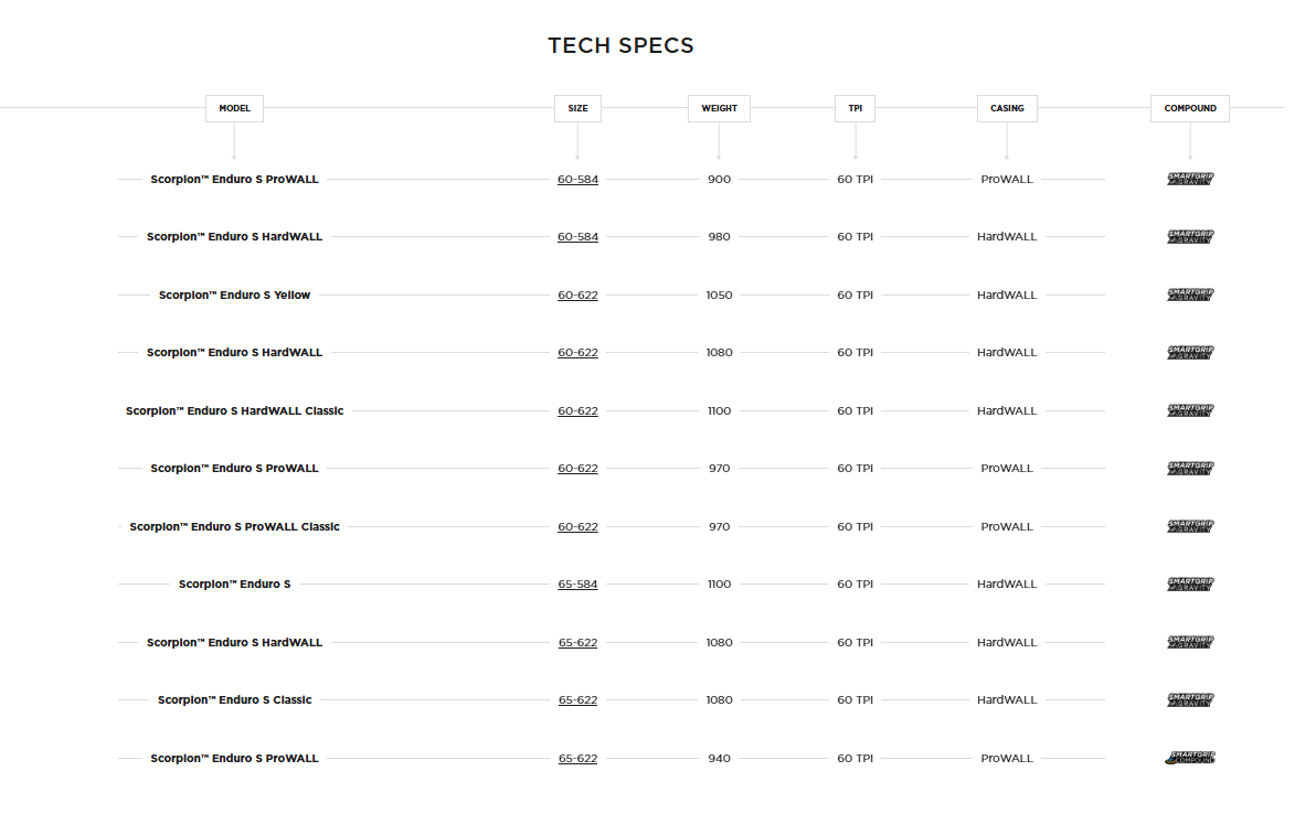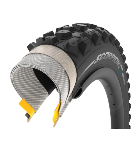Гумите Pirelli Scorpion Enduro S MTB предлагат отлично сцепление върху смесени повърхности с максимална устойчивост на пробиване. Височината на ушите и тяхното разстояние са перфектно съобразени със специално разработената каучукова смес SmartGRIP Gravity.