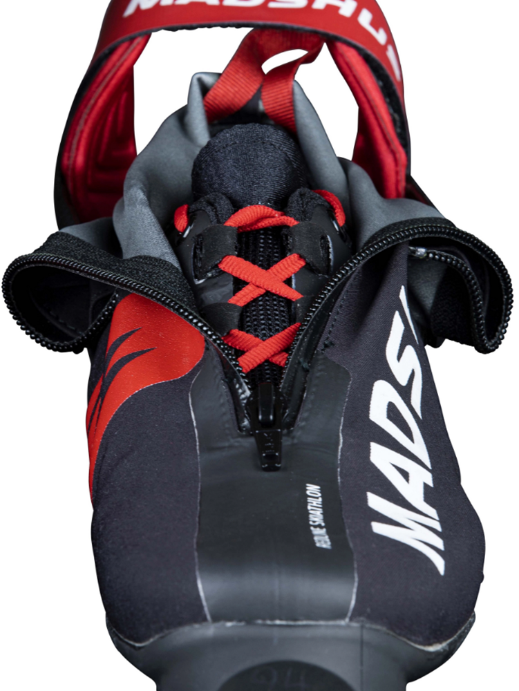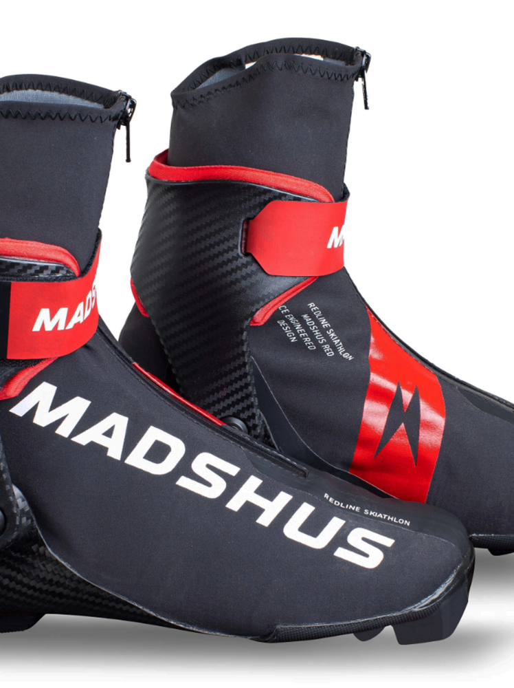 Обувката Redline Skiathlon е изградена върху същата 3D форма като новата обувка Redline Skate. Новата интегрирана въглеродна основа и стабилен маншет са проектирани да се справят безпроблемно с предизвикателствата, както на свободното ски каране, така и на класическото, осигурявайки платформа за мощен тласък, плъзгане без усилие и удобно носене. Madshus препоръчват да опитате Redline Skiathlon за маратонни състезания – стабилната опора ще ви помогне да предотвратите умората и ще ви държи силни по целия път до финала. Чисто новата ниско изрязана подплата RaceWrap осигурява по-оформена и удобна форма.