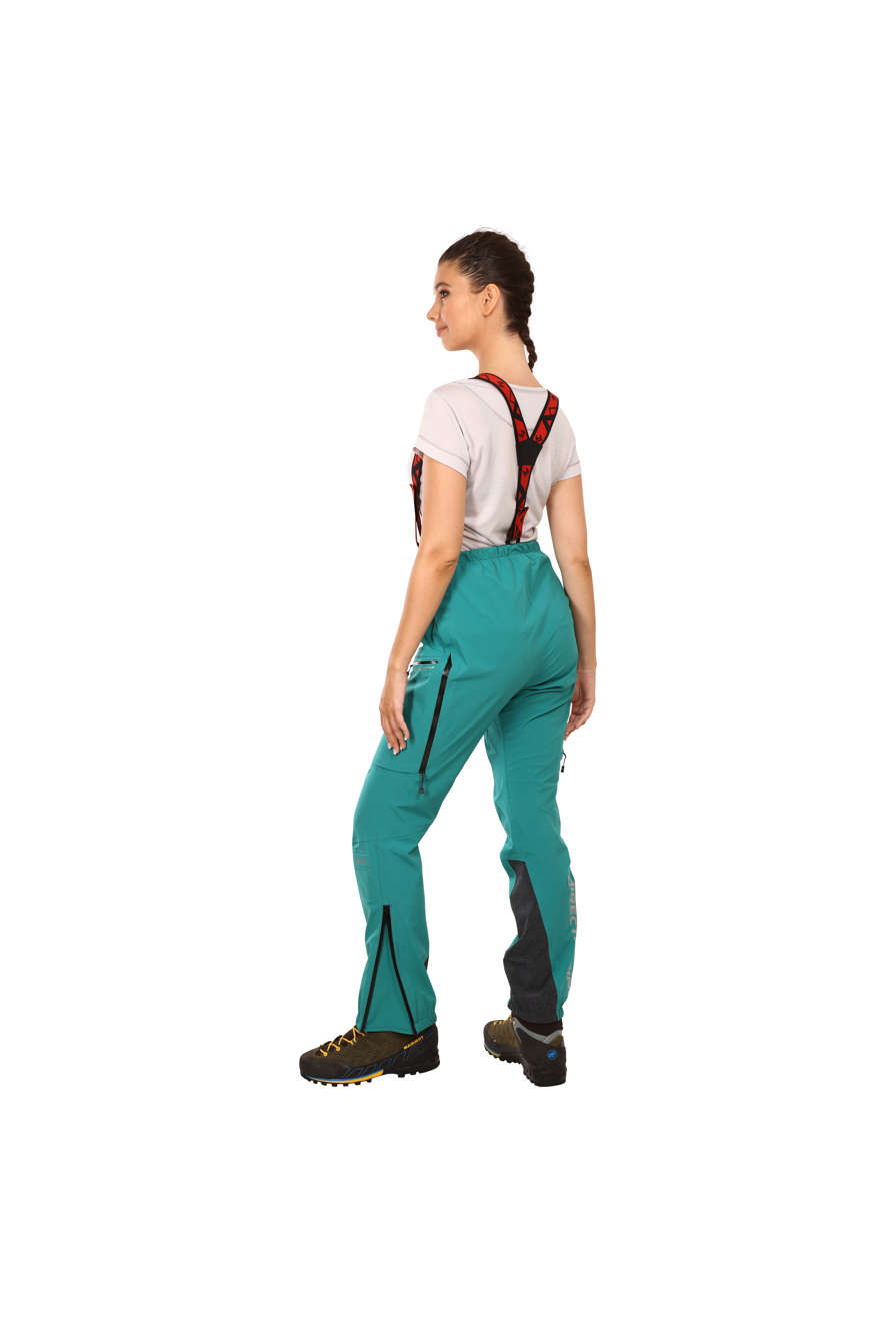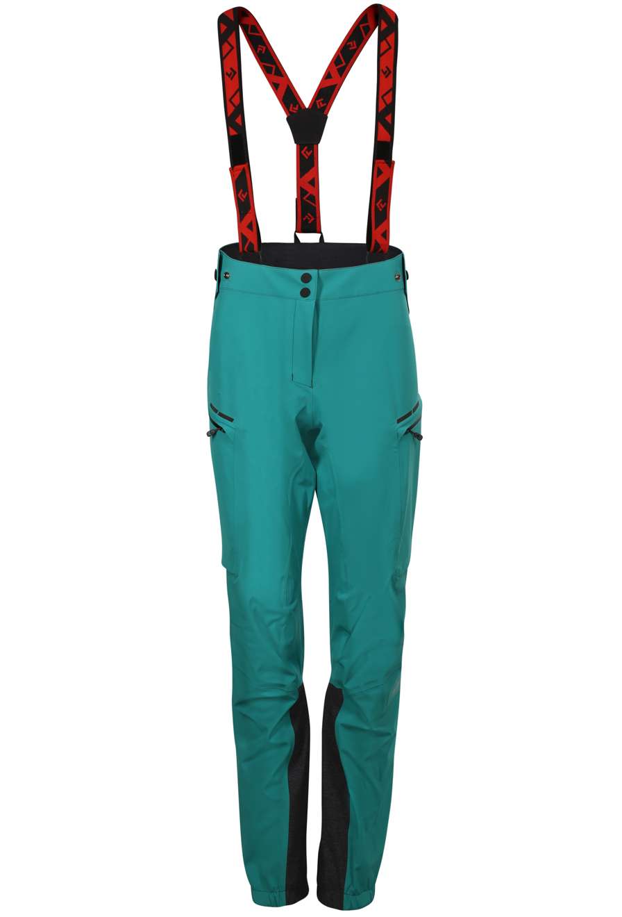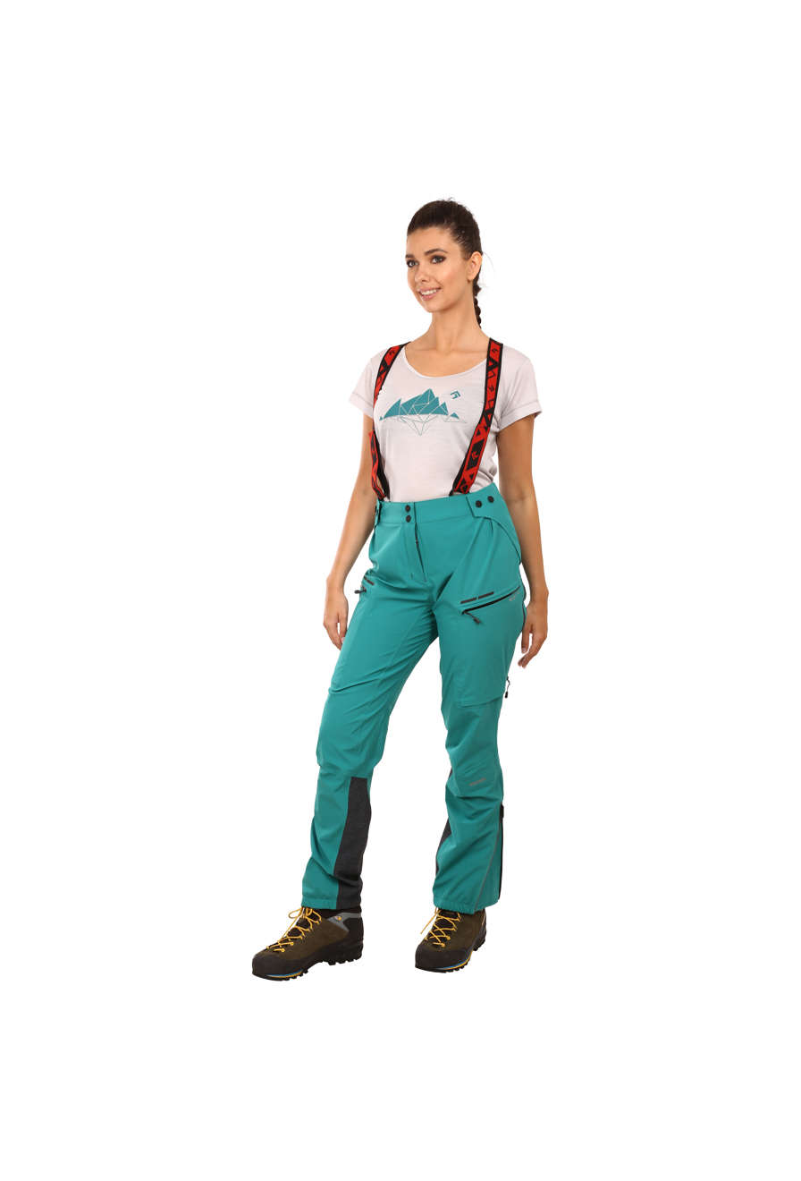 Дамски функционален панталон с технична кройка. Благодарение на използването на удобен, еластичен твърд материал, Pertex® Shield, който е специално разработен за бързи и аеробни дейности, прави този панталон универсалното решение за всяка дейност на открито.