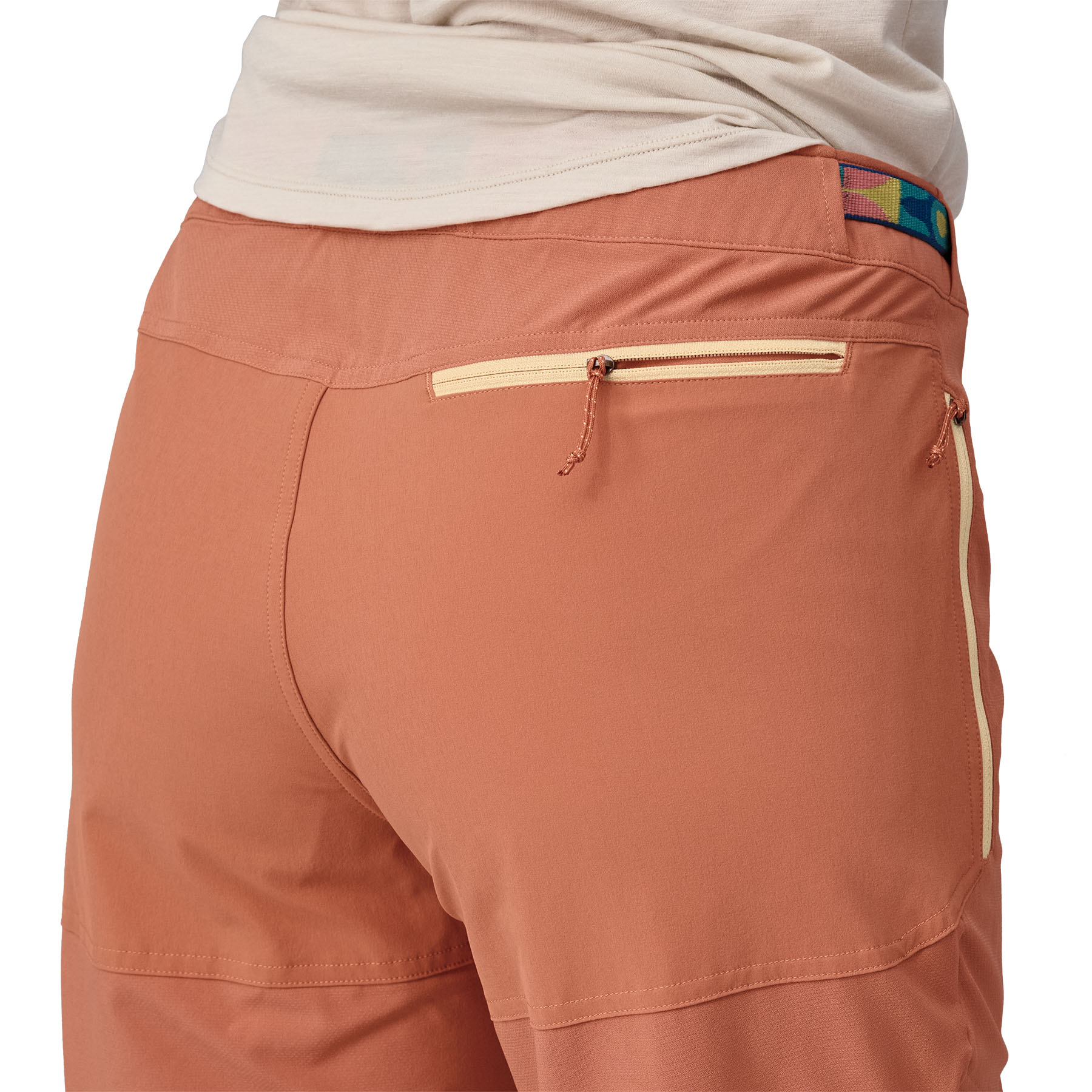 Лека смес от рециклиран полиестер и спандекс, осигуряващи отлична разтегливост за пълна свобода на движенията; издръжливата обвивка е от рециклиран найлон и рециклиран спандекс, осигуряващи допълнителна защита от камъни и абразия