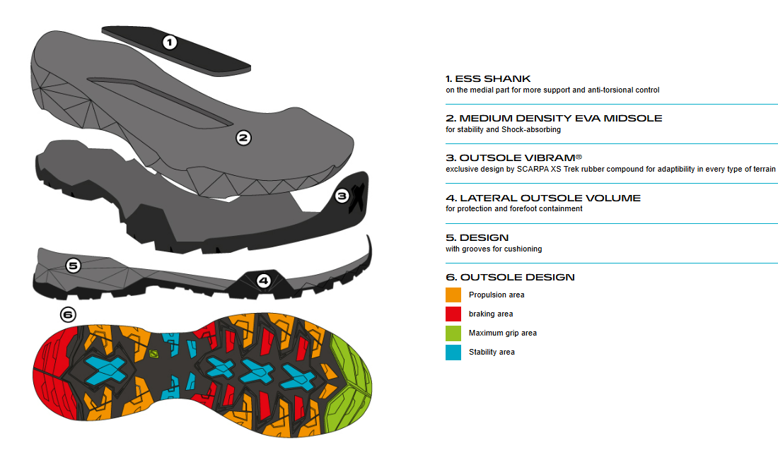 Подметка SALIX с междинен слой от EVA пяна и външен слой от гума Vibram® XS Trek – за максимален комфорт и сцепление върху всякакъв терен.