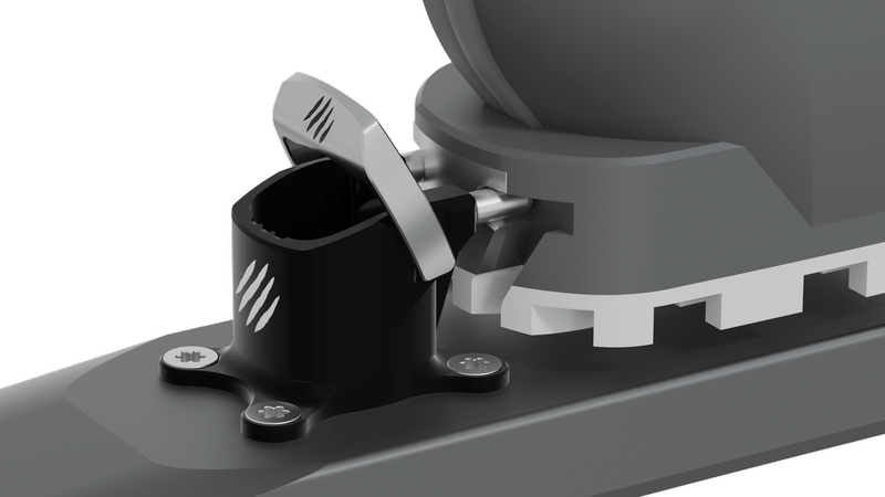 Новият механизъм на петата осигурява безопасно странично и вертикално освобождаване на ски обувката. В режим на изкачване е възможна регулация на позицията на крака.