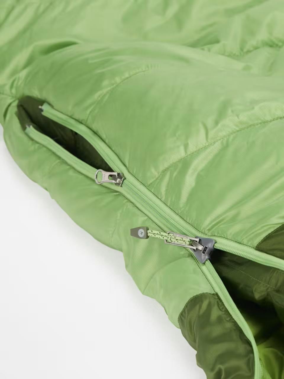 Плъзгач против заяждане на основния цип и втори падащ цип осигуряват допълнителна вентилация и лесен достъп в и извън спалния чувал.