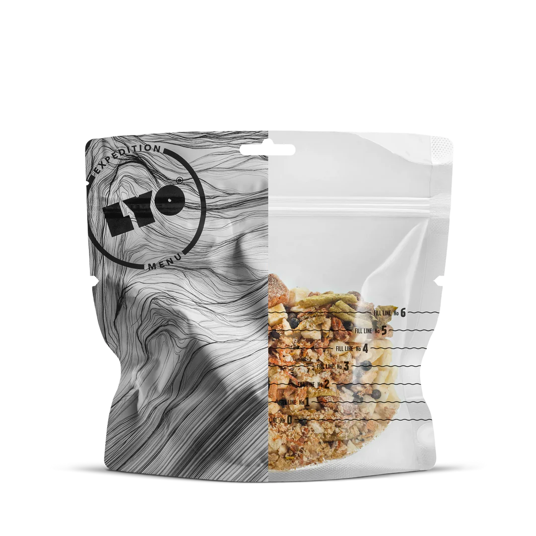 Лека и функционална опаковка: Опаковката е лека и удобна за приготвяне на LYO ястията директно вътре в нея.