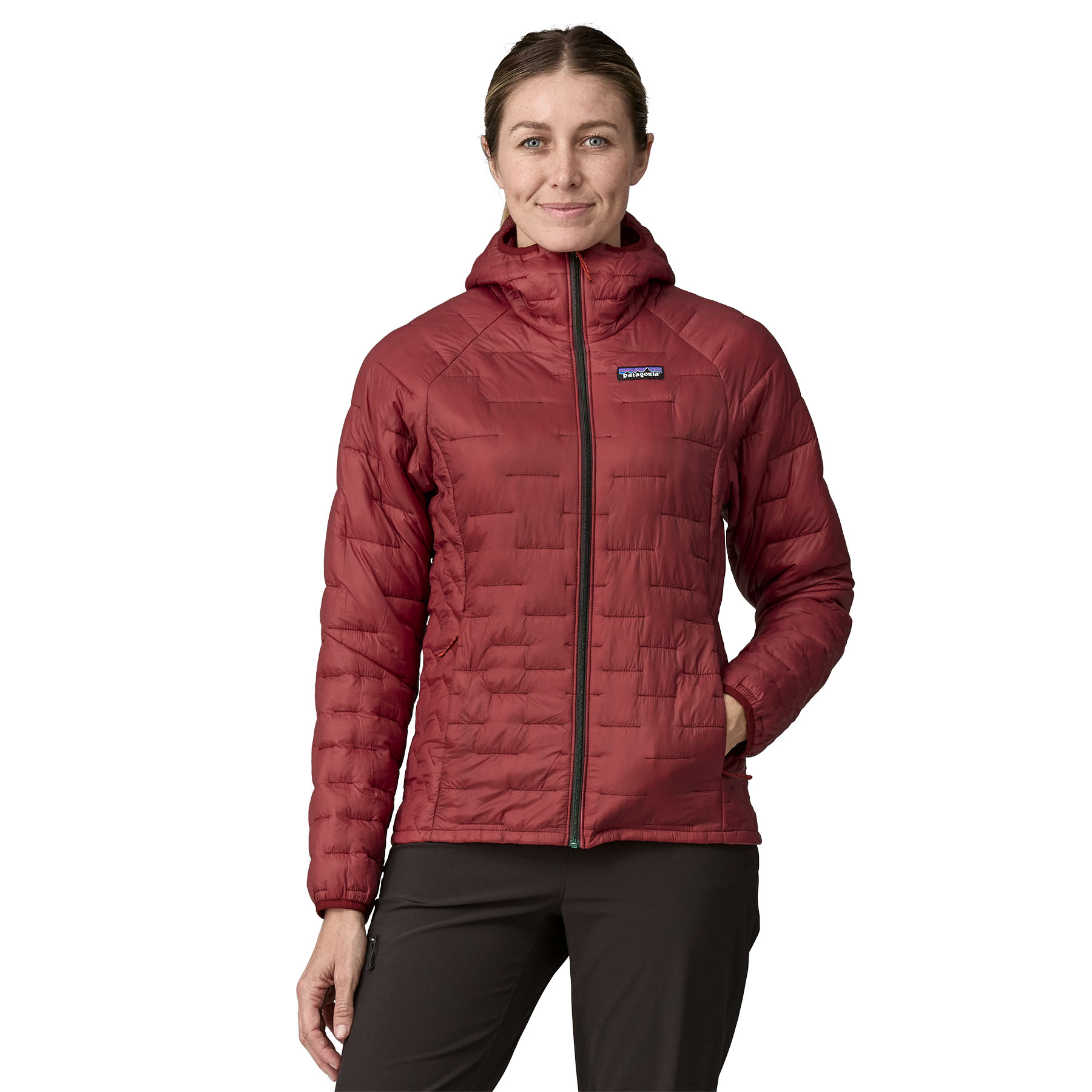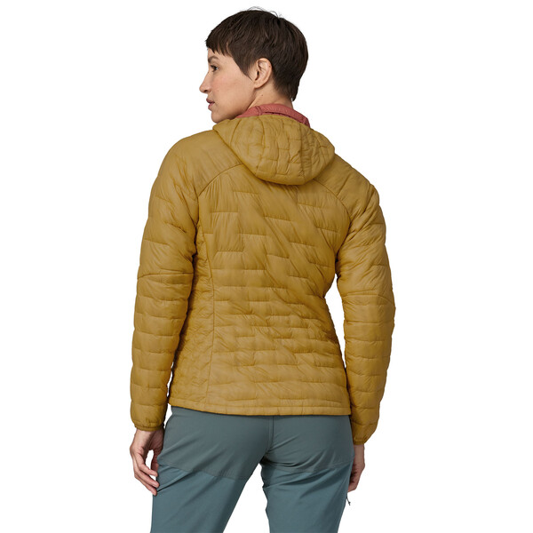 Micro Puff® Hoody е комбинация от ултралеката Pertex® Quantum мембранна материя и с PlumaFill изолация, в резултат на което якето е с най-доброто съотношение между тегло и топлинна изолация от произвдените якета досега от Patagonia. То е и с най-високо ниво на компресиране и намаляване на обема за прибиране в джоба в сравнение с всяко едно от техните синтетични якета. То е вашият излолационен слой за лоши метерологични условия и ниски температури. Мембранната материя е изработена от NetPlus® 100% пост консуматорски рециклиран ripstop найлон от рибарски мрежи, изолацията е от 100% рециклиран полиестер. Fair Trade Certified™ шивашко производство.