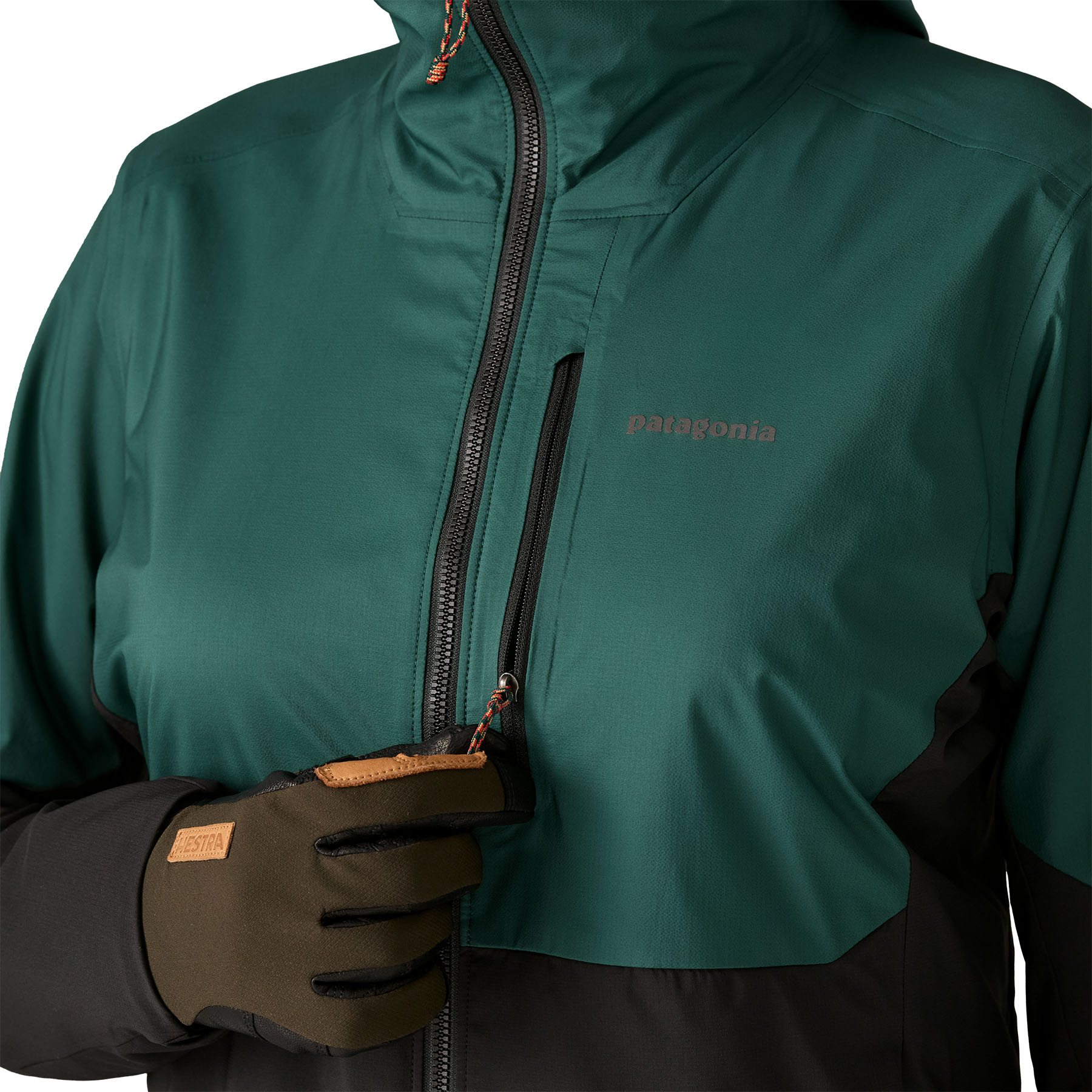 Еластичната качулка Light Touch Expansion пасва удобно върху шапка или каска и може лесно да се сваля и слага дори когато ципът е напълно закопчан. Предният цип завършва с „гараж“ при брадичката, който предотвратява протриване.